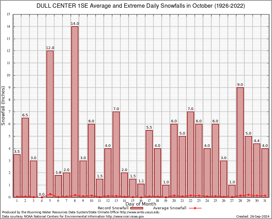 October Average and Extreme Daily Snowfall AMounts (1926-2022)