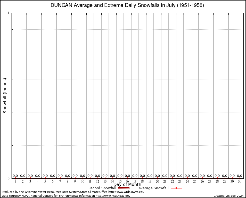DUNCAN (482737) July Average and Extreme Daily Snowfall AMounts (1951-1958) To index page for DUNCAN