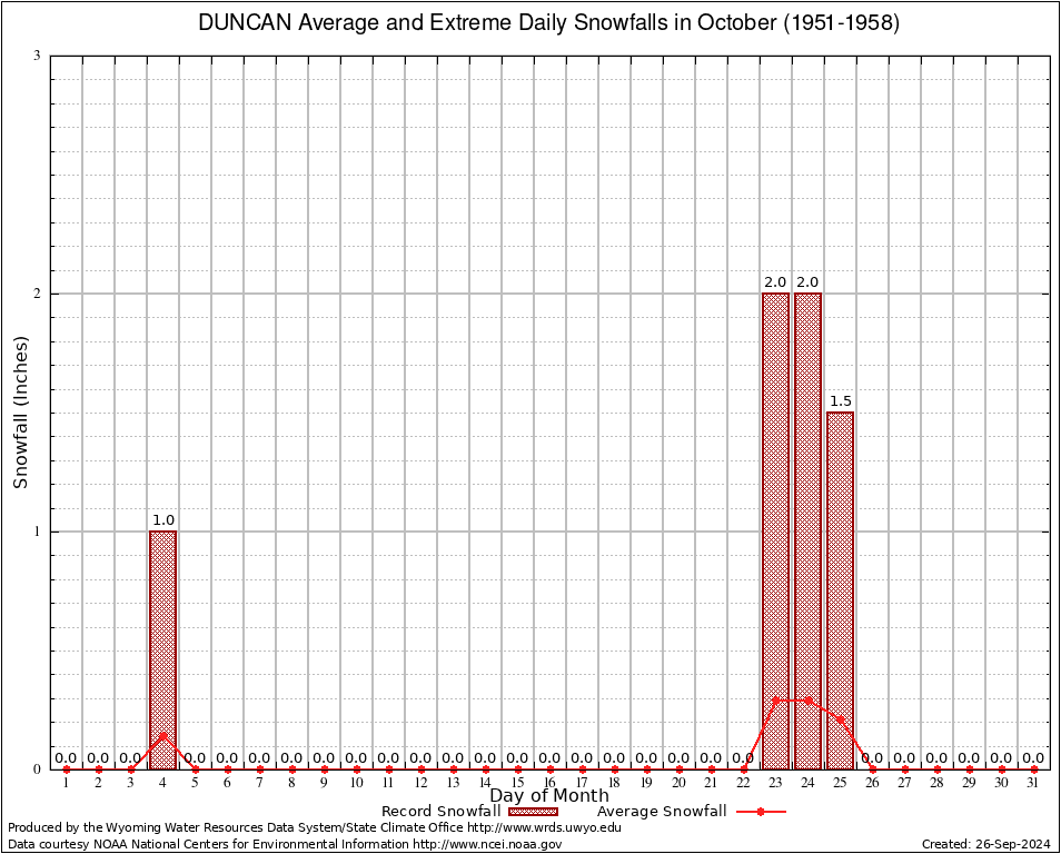 DUNCAN (482737) October Average and Extreme Daily Snowfall AMounts (1951-1958) To index page for DUNCAN