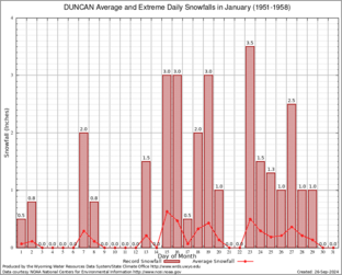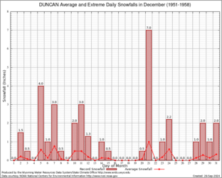 Record Extreme and Average Daily Snowfall (1951-1958)