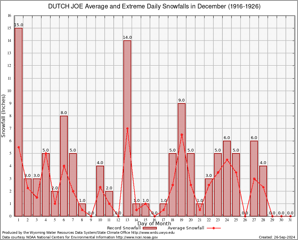 DUTCH JOE (482780) December Average and Extreme Daily Snowfall AMounts (1916-1926) To index page for DUTCH JOE