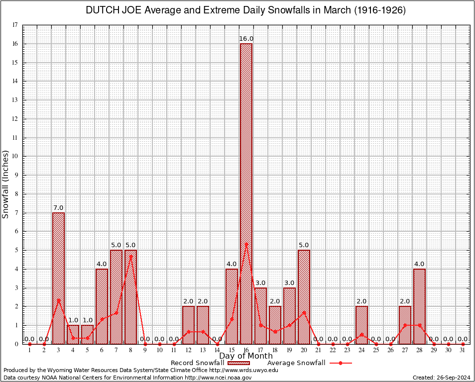 March Average and Extreme Daily Snowfall AMounts (1916-1926)