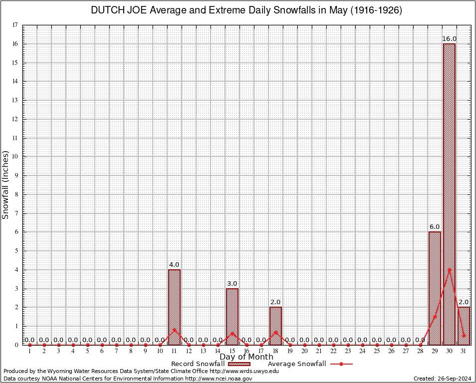 May Average and Extreme Daily Snowfall AMounts (1916-1926)