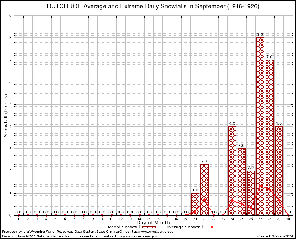 DUTCH JOE (482780) September Average and Extreme Daily Snowfall AMounts (1916-1926) To index page for DUTCH JOE