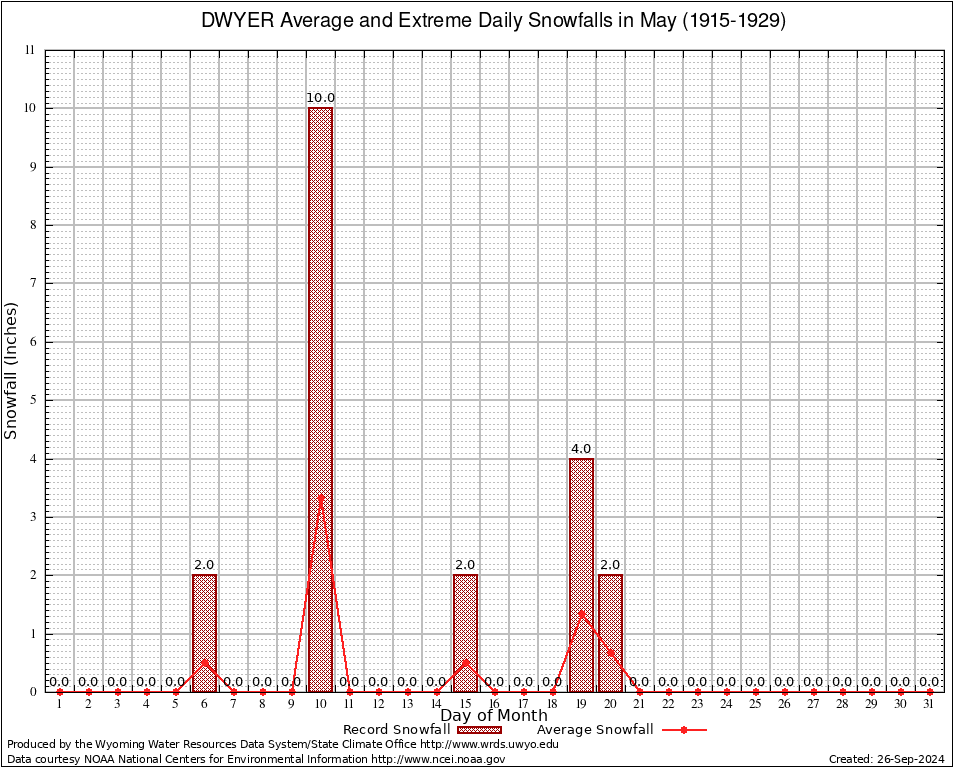 DWYER (482800) May Average and Extreme Daily Snowfall AMounts (1915-1929) To index page for DWYER