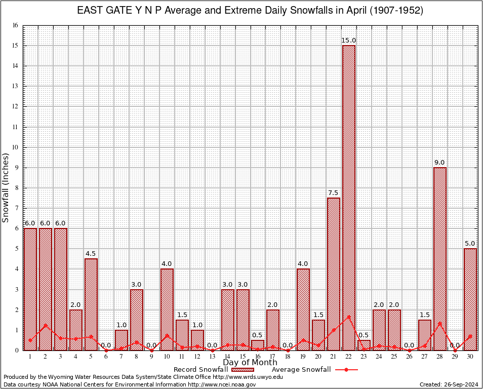 April Average and Extreme Daily Snowfall AMounts (1907-1952)
