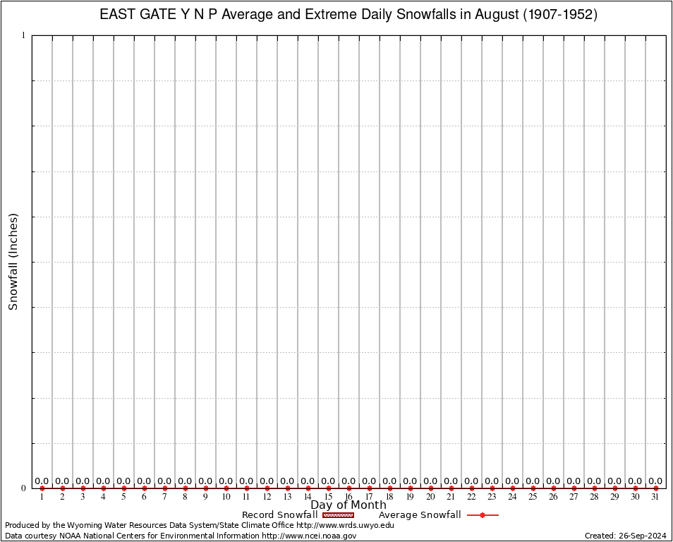 August Average and Extreme Daily Snowfall AMounts (1907-1952)