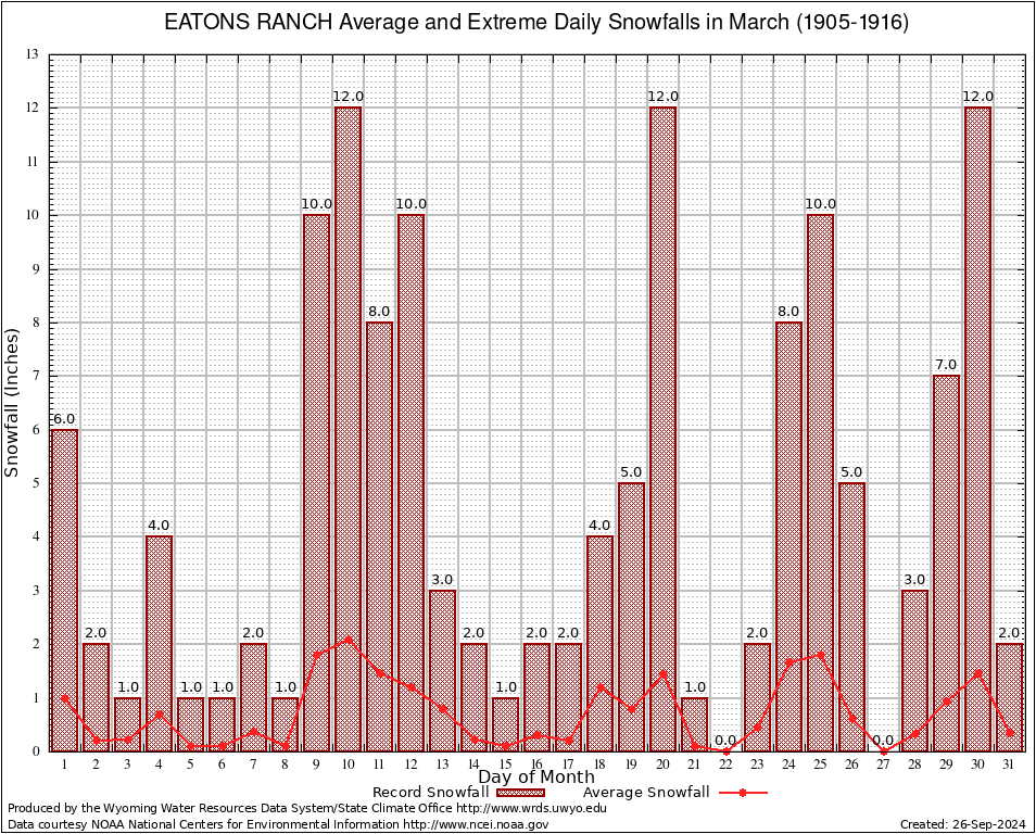 March Average and Extreme Daily Snowfall AMounts (1905-1916)
