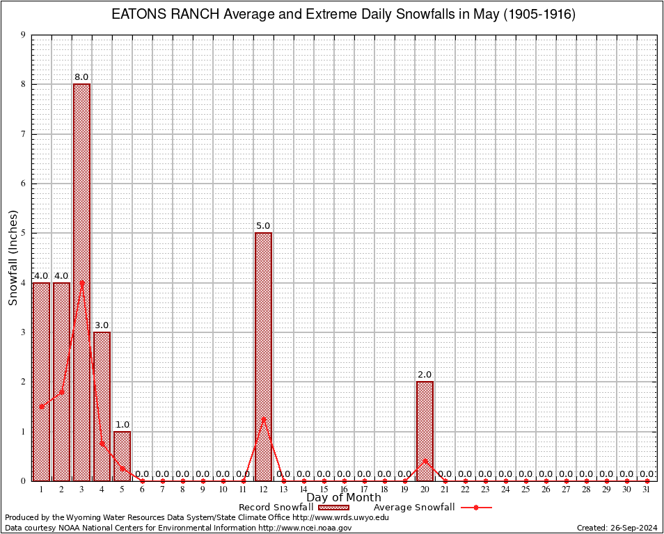 May Average and Extreme Daily Snowfall AMounts (1905-1916)