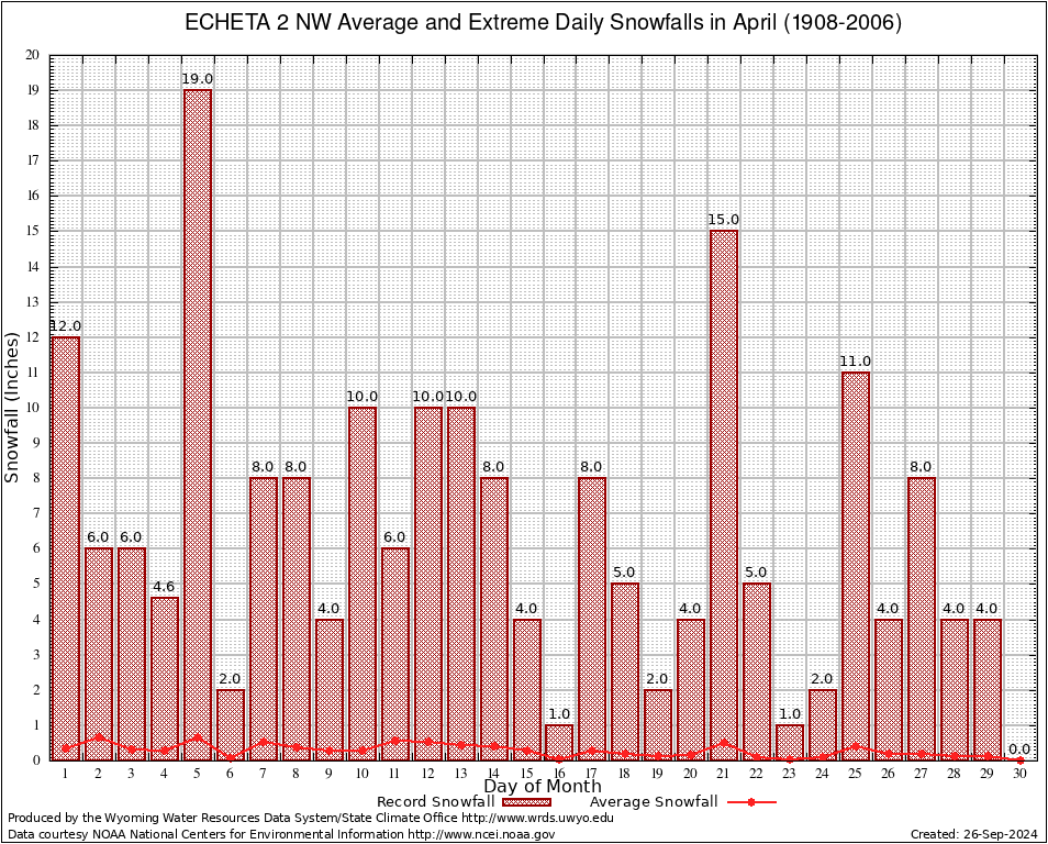 April Average and Extreme Daily Snowfall AMounts (1908-2006)