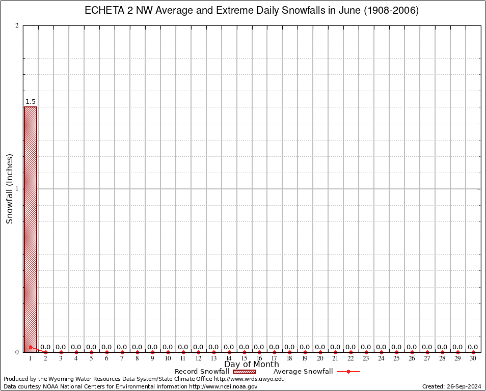 June Average and Extreme Daily Snowfall AMounts (1908-2006)