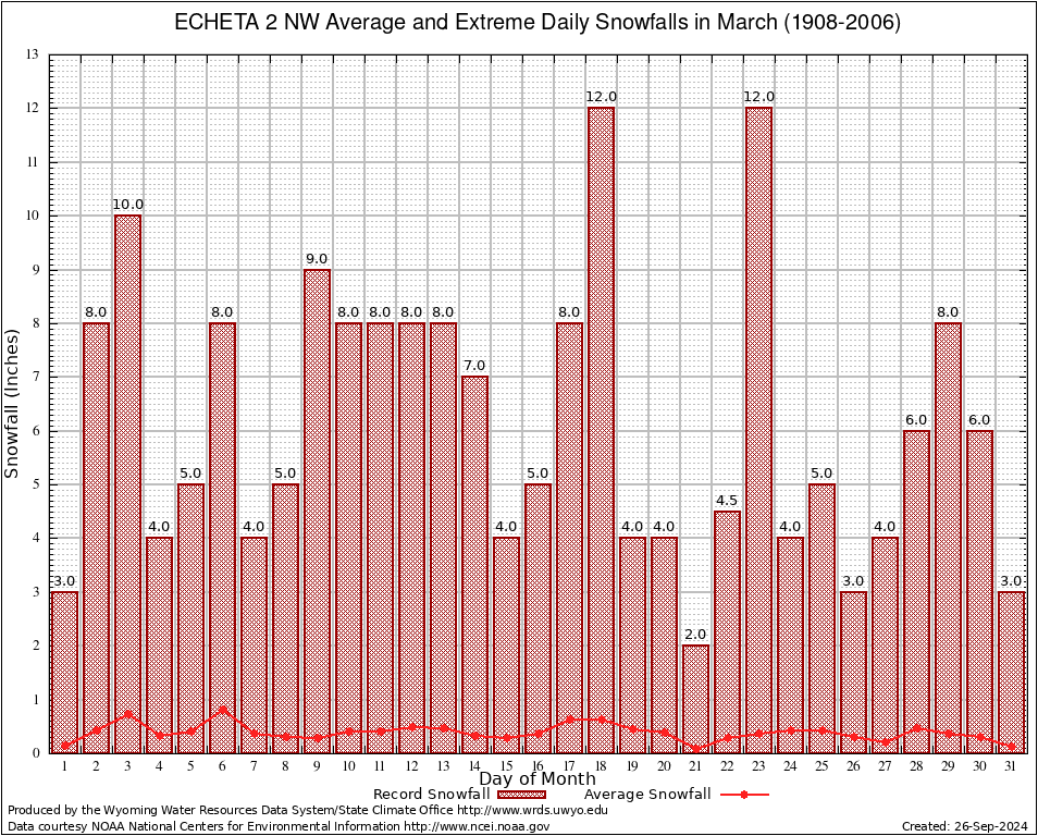 March Average and Extreme Daily Snowfall AMounts (1908-2006)