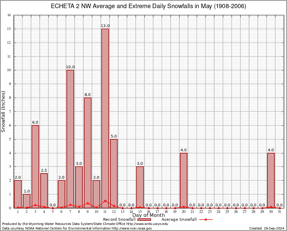 May Average and Extreme Daily Snowfall AMounts (1908-2006)
