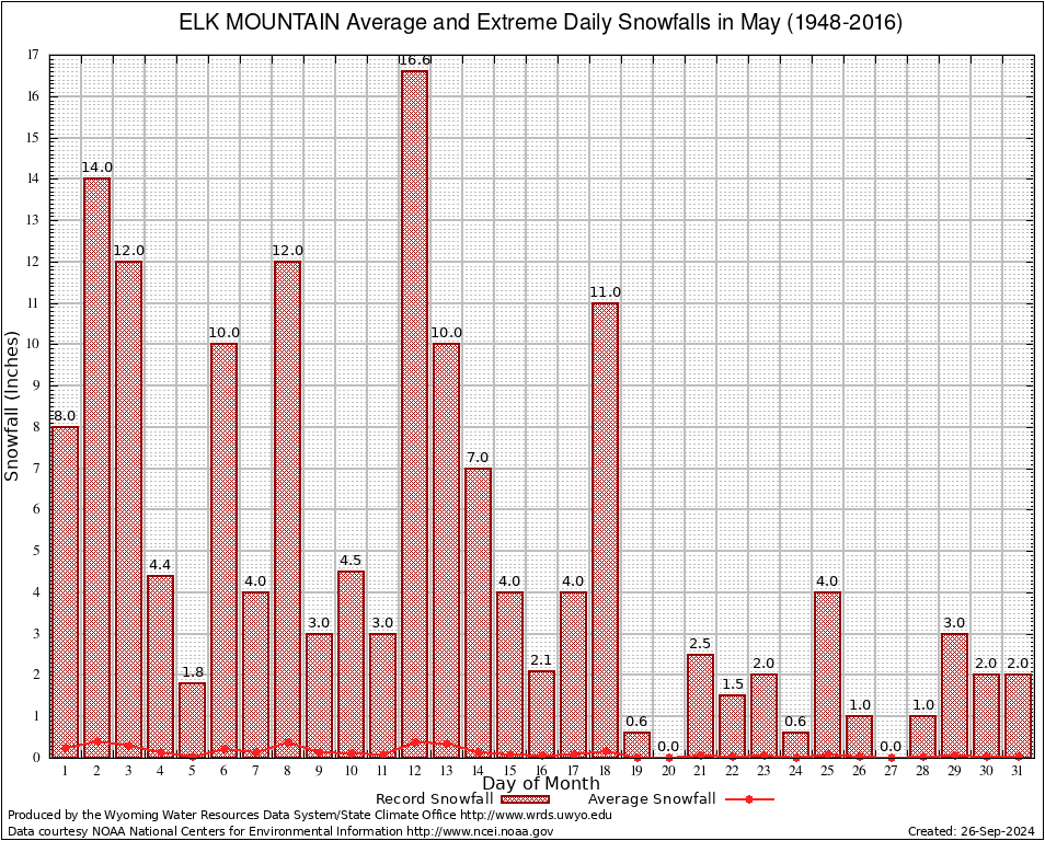 May Average and Extreme Daily Snowfall AMounts (1948-2016)