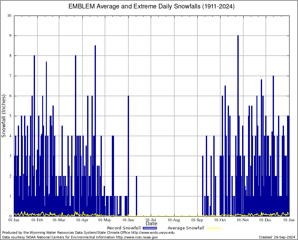 EMBLEM (483031) Annual Average and Extreme Daily Snowfall AMounts (1911-2024) To index page for EMBLEM