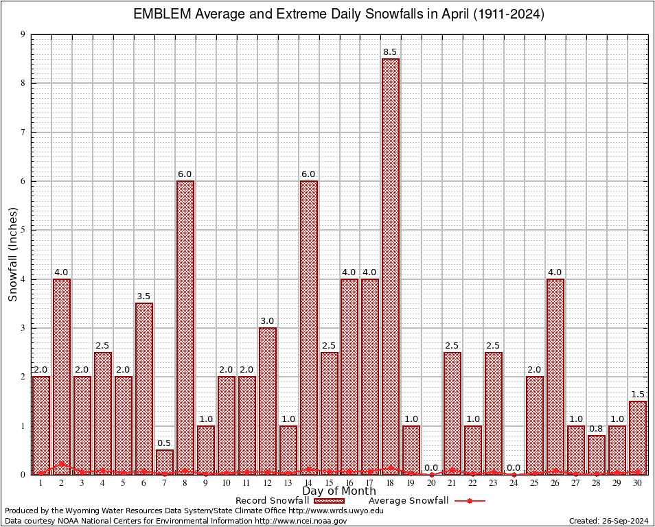 EMBLEM (483031) April Average and Extreme Daily Snowfall AMounts (1911-2024) To index page for EMBLEM