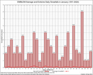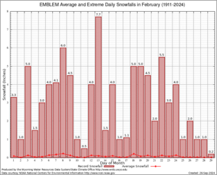 Record Extreme and Average Daily Snowfall (1911-2024)