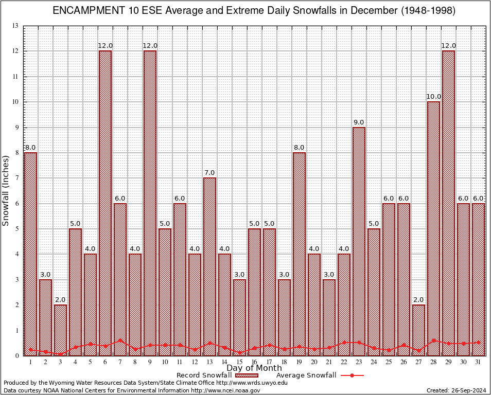 December Average and Extreme Daily Snowfall AMounts (1948-1998)