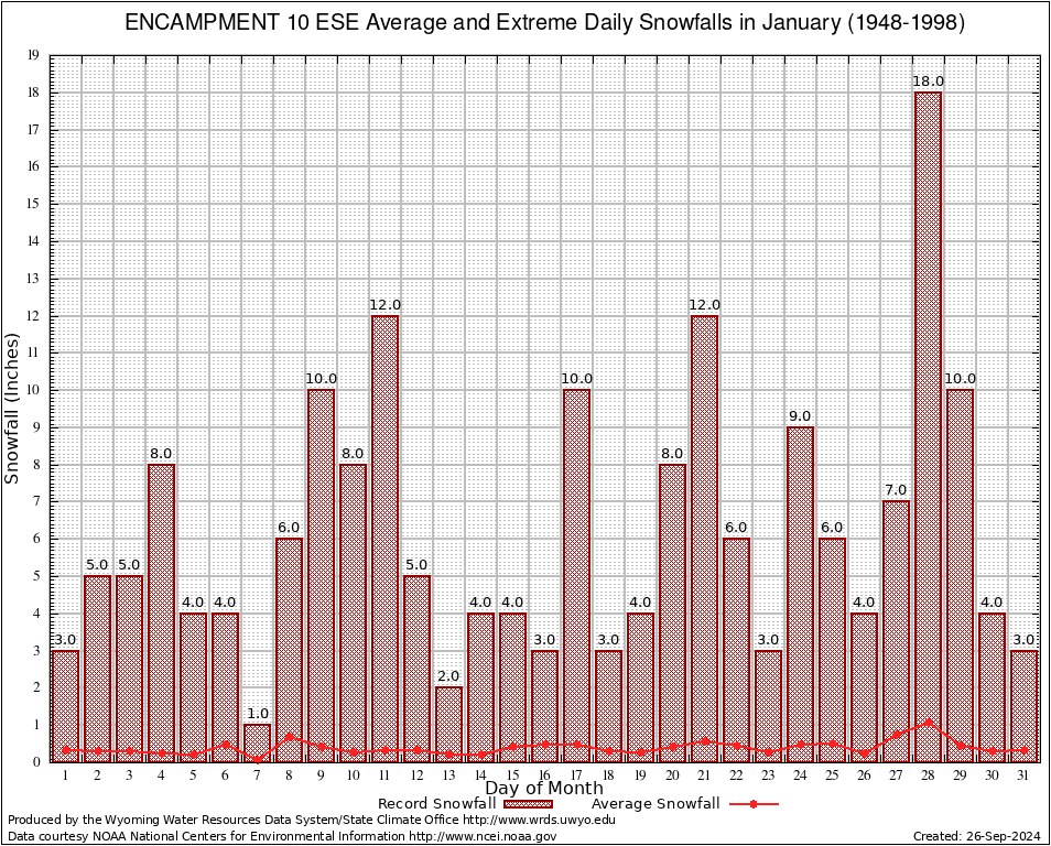 January Average and Extreme Daily Snowfall AMounts (1948-1998)