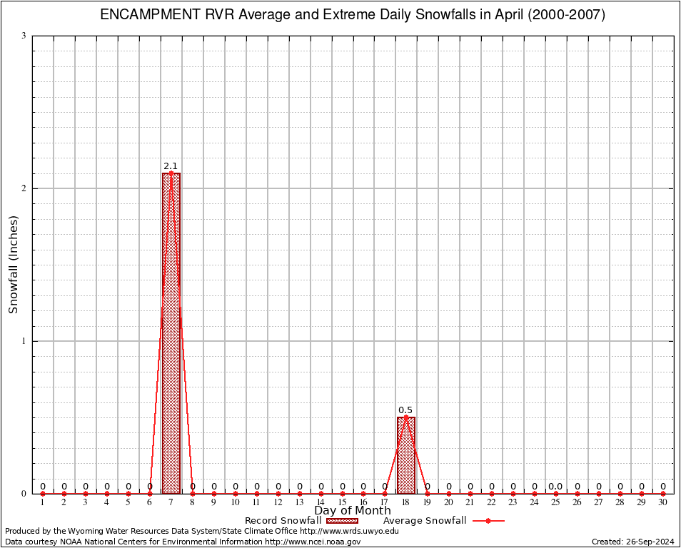 April Average and Extreme Daily Snowfall AMounts (2000-2007)