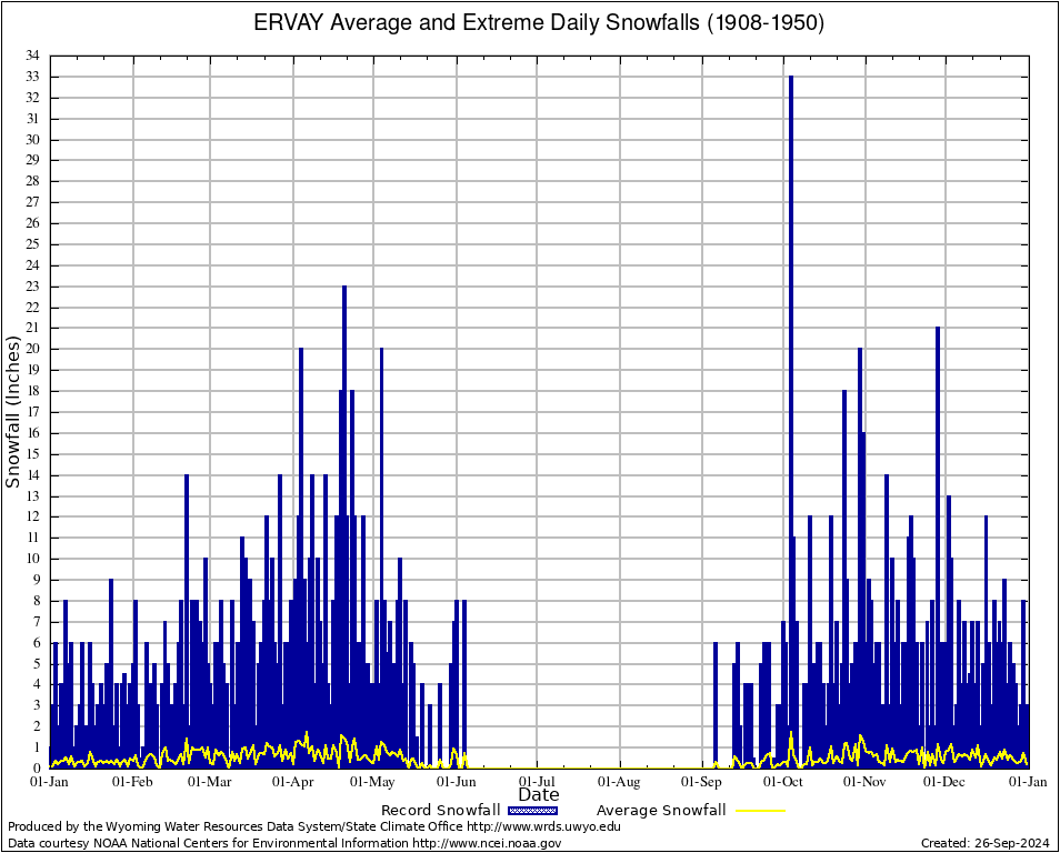 ERVAY (483060) Annual Average and Extreme Daily Snowfall AMounts (1908-1950) To index page for ERVAY