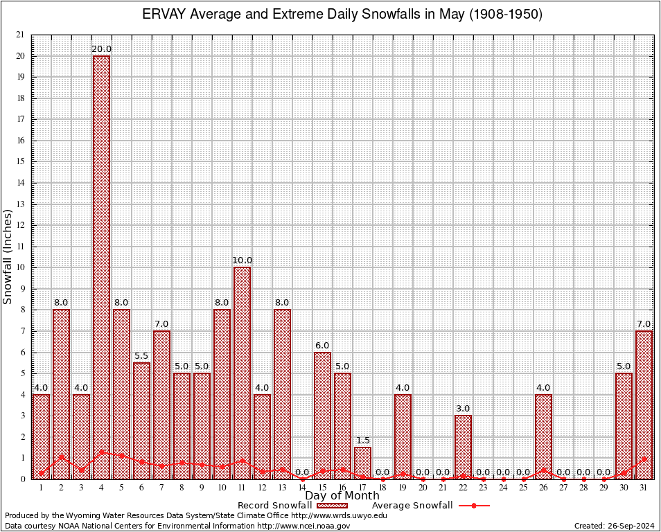 ERVAY (483060) May Average and Extreme Daily Snowfall AMounts (1908-1950) To index page for ERVAY