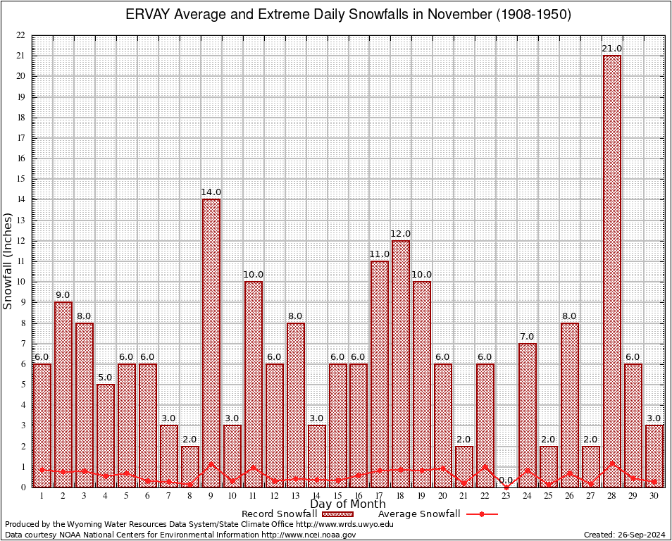 ERVAY (483060) November Average and Extreme Daily Snowfall AMounts (1908-1950) To index page for ERVAY