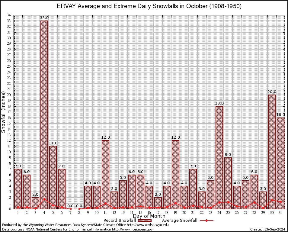 ERVAY (483060) October Average and Extreme Daily Snowfall AMounts (1908-1950) To index page for ERVAY