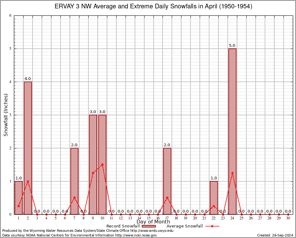 April Average and Extreme Daily Snowfall AMounts (1950-1954)