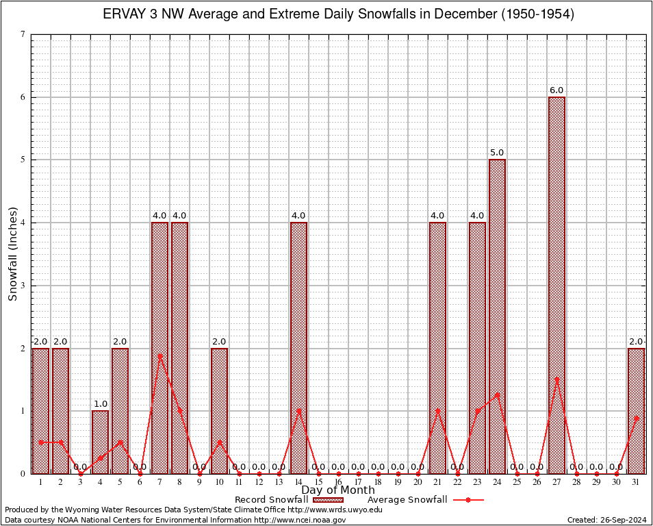 ERVAY 3 NW (483064) December Average and Extreme Daily Snowfall AMounts (1950-1954) To index page for ERVAY 3 NW