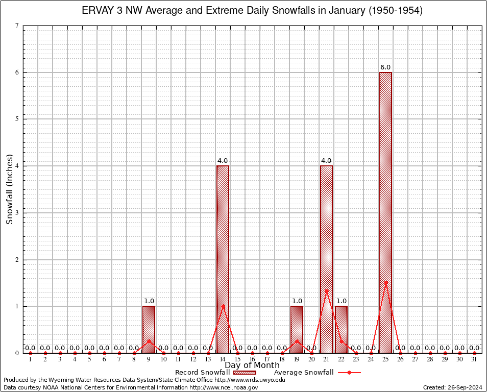 January Average and Extreme Daily Snowfall AMounts (1950-1954)