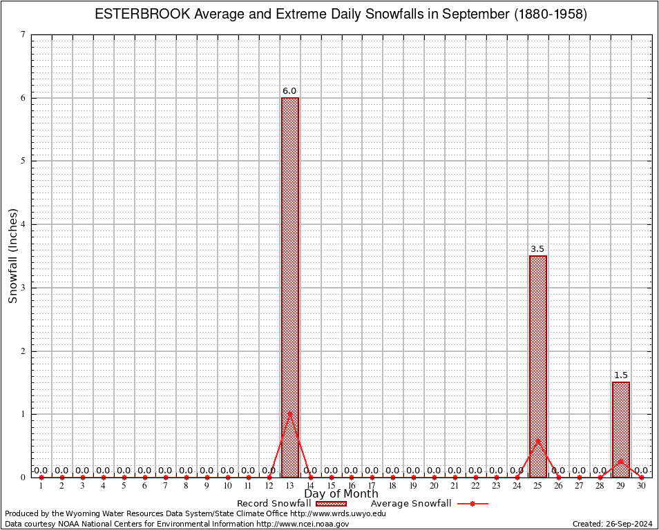 ESTERBROOK (483073) September Average and Extreme Daily Snowfall AMounts (1880-1958) To index page for ESTERBROOK