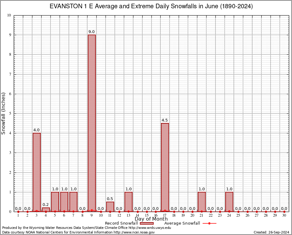June Average and Extreme Daily Snowfall AMounts (1890-2024)