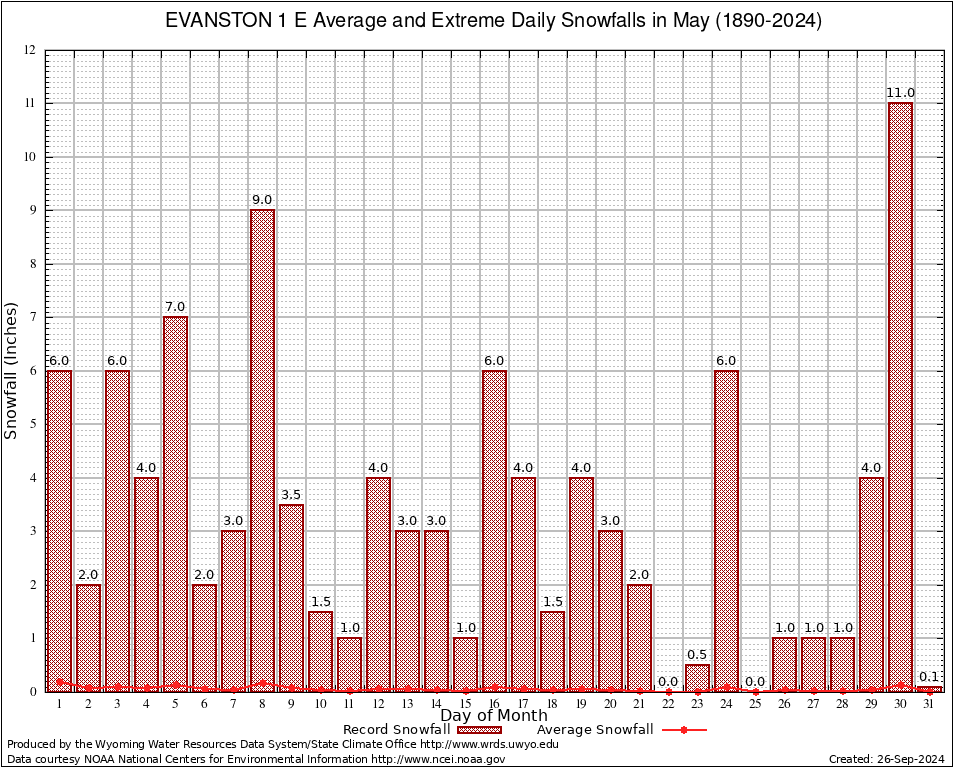 May Average and Extreme Daily Snowfall AMounts (1890-2024)
