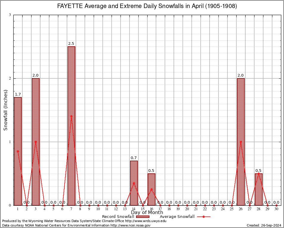 FAYETTE (483210) April Average and Extreme Daily Snowfall AMounts (1905-1908) To index page for FAYETTE