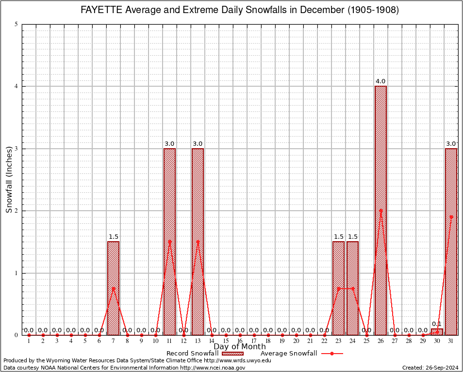 FAYETTE (483210) December Average and Extreme Daily Snowfall AMounts (1905-1908) To index page for FAYETTE
