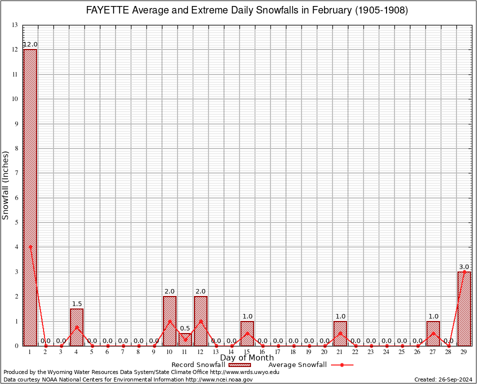 FAYETTE (483210) February Average and Extreme Daily Snowfall AMounts (1905-1908) To index page for FAYETTE