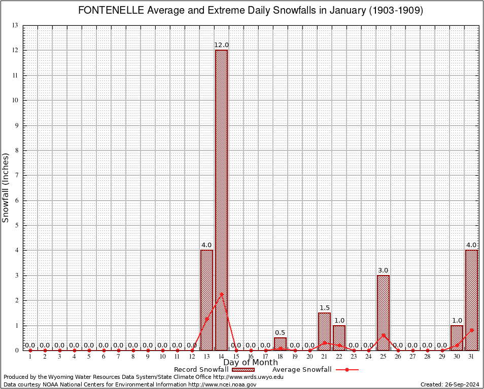 January Average and Extreme Daily Snowfall AMounts (1903-1909)