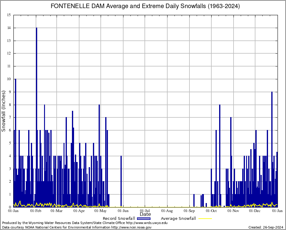 Annual Average and Extreme Daily Snowfall AMounts (1963-2024)