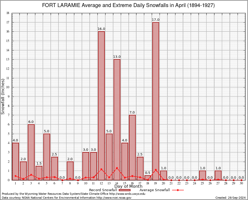 April Average and Extreme Daily Snowfall AMounts (1894-1927)