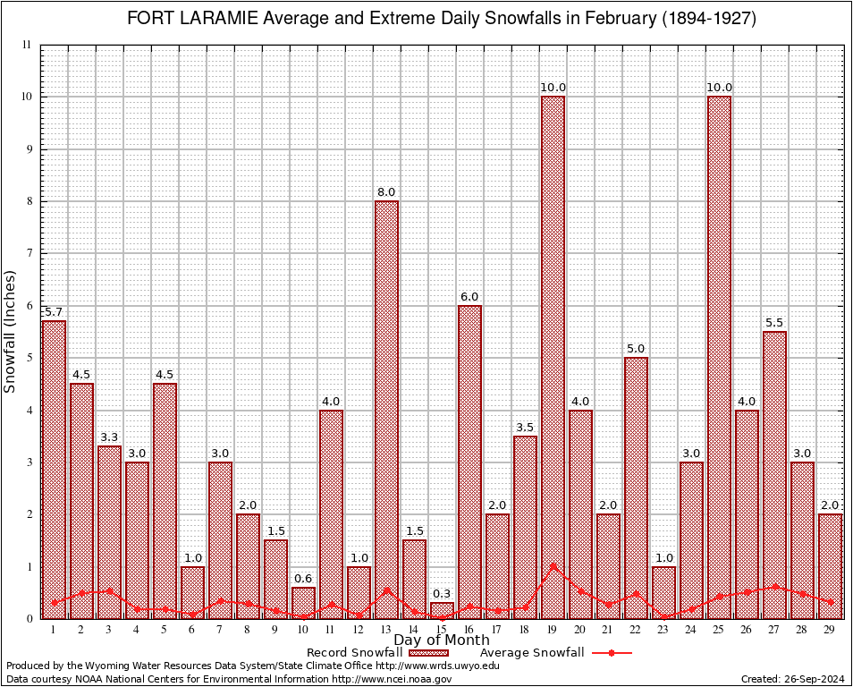 February Average and Extreme Daily Snowfall AMounts (1894-1927)