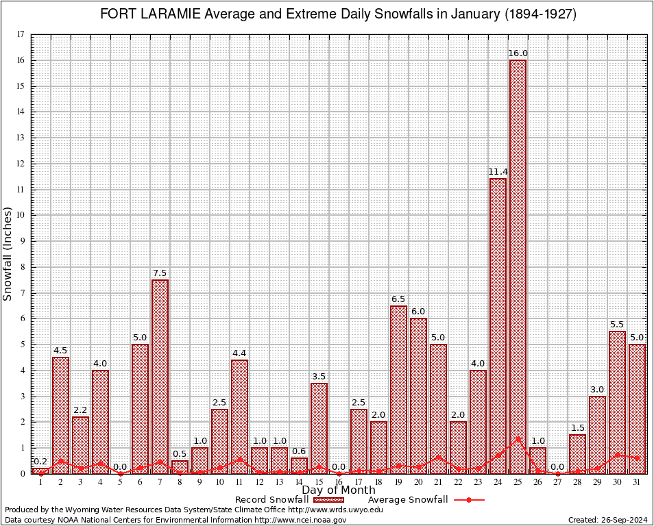 January Average and Extreme Daily Snowfall AMounts (1894-1927)
