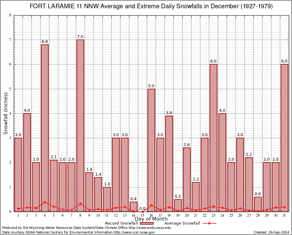 December Average and Extreme Daily Snowfall AMounts (1927-1979)