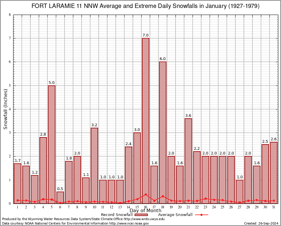 January Average and Extreme Daily Snowfall AMounts (1927-1979)