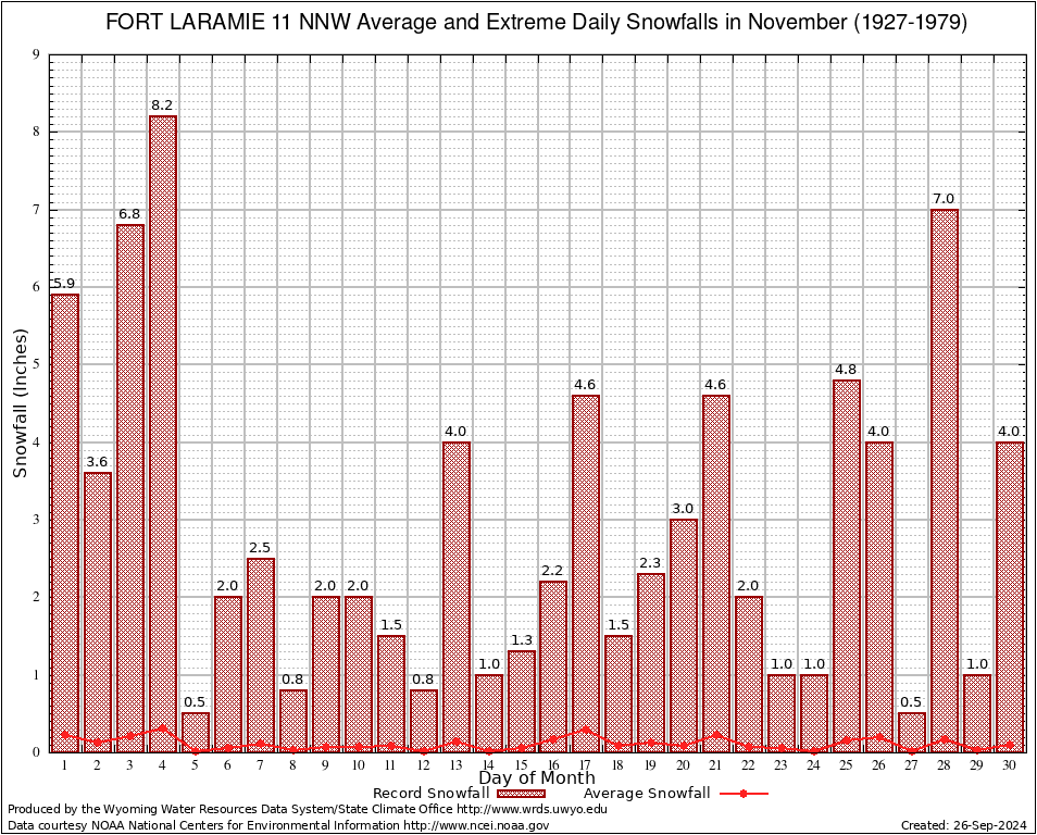 November Average and Extreme Daily Snowfall AMounts (1927-1979)