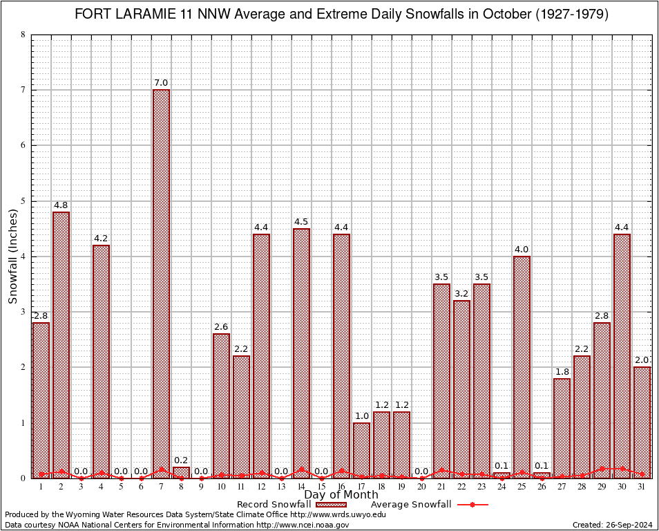 October Average and Extreme Daily Snowfall AMounts (1927-1979)