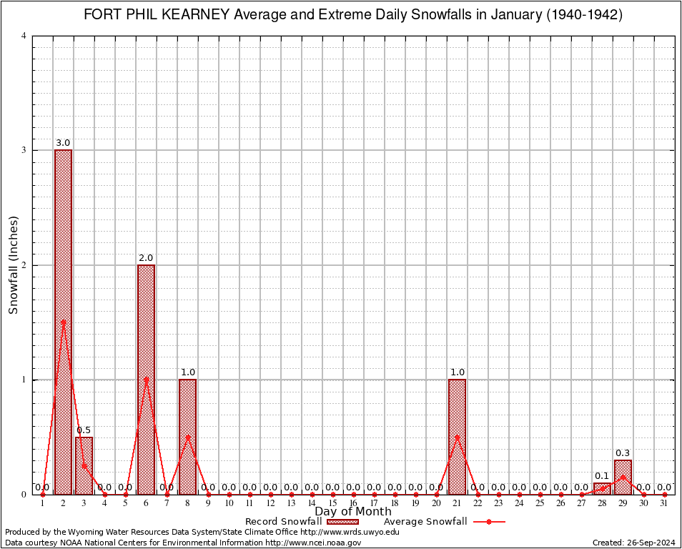 January Average and Extreme Daily Snowfall AMounts (1940-1942)