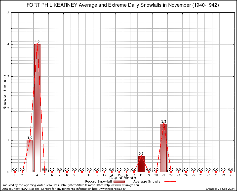 November Average and Extreme Daily Snowfall AMounts (1940-1942)