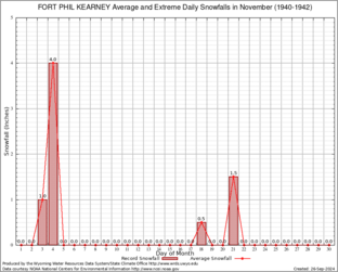 FORT PHIL KEARNEY (483540) Record Extreme and Average Daily Snowfall (1940-1942) See Here for Other Stations