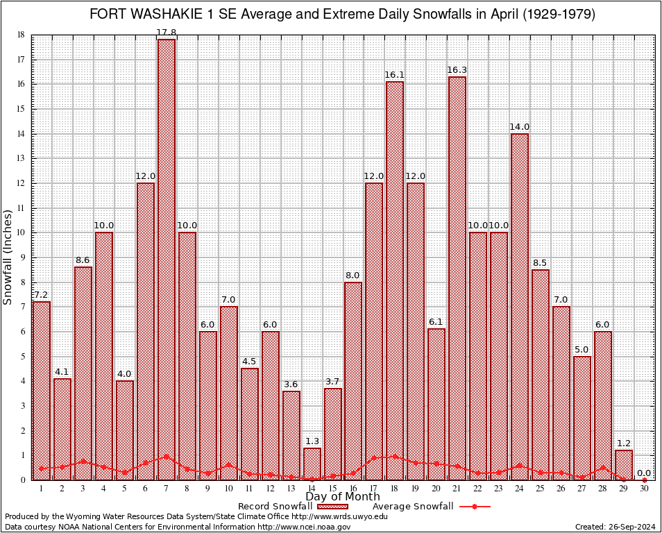 April Average and Extreme Daily Snowfall AMounts (1929-1979)